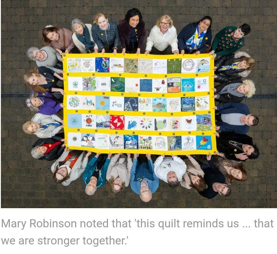 The quilt will be presented by Mary Robinson to Brazil’s Climate Minister. See also Irish Times: Quilt woven by Irish groups sends message of solidarity to Cop30 climate summit